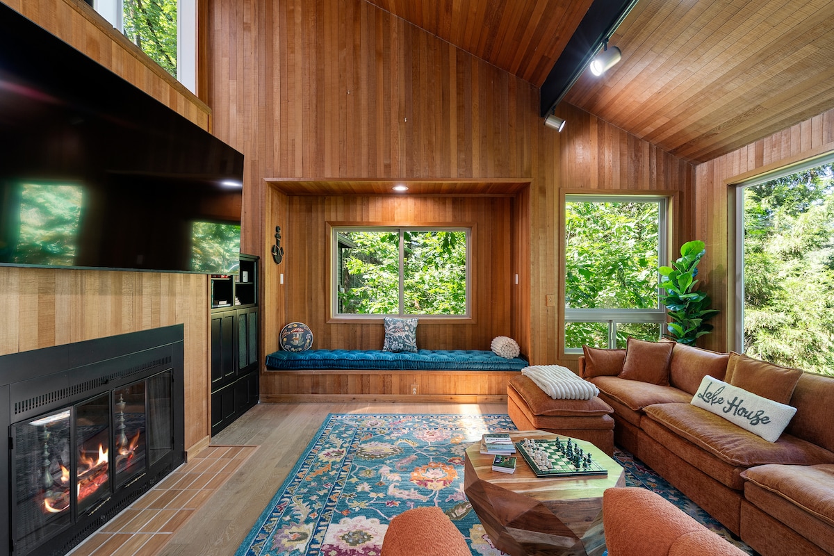 Dieses private, renovierte Kunstatelier verfügt über Oberlichter und ruhige Aussicht auf die Natur. Als Innenarchitektin habe ich es geliebt, einen Raum zu schaffen, der genauso sehr ein Erlebnis ist wie eine Nacht weg von zu Hause... und nur 10 Meilen von der Innenstadt von Portland entfernt! Bitte beachte, dass ab dem 19. Dezember 2025 mit dem Bau von drei Häusern hinter unserem Ferienhaus begonnen wurde. Die Arbeit kann von 7:00 bis 16:00 Uhr von Mo-Fr beginnen. Während dieser Stunden könnte es zu Lärm kommen, das liegt außerhalb unserer Kontrolle.