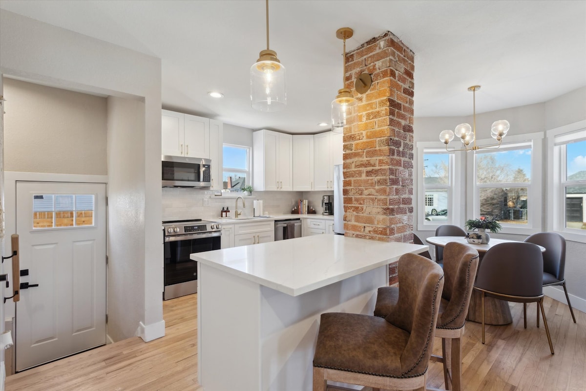 Fantastische Lage! Warm & gemütlich. Diese geräumige, private Unterkunft mit 2 Schlafzimmern und einem zusätzlichen Zimmer mit Etagenbett befindet sich in einer super freundlichen, gemütlichen Souterrain-Suite in einem der coolsten Viertel von Denver. Zu Fuß 7 Blocks zur Tennyson Street für tolle Geschäfte, Restaurants und Bars. Ein schneller Sprung auf die I-70 bietet einfachen Zugang, um die Berge, Red Rocks (20 Min.), Golden, Boulder und mehr zu erkunden! Mein nach einem Brand wiederaufgebautes Zuhause ist eine Herzensangelegenheit. Genieße moderne Annehmlichkeiten des Neubaus mit Wärmekomfort und Kreativität.