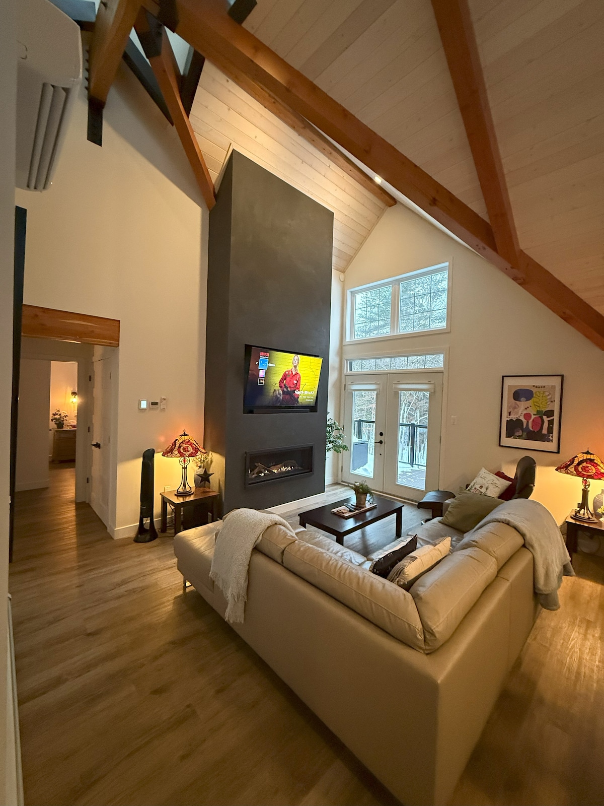 Experience a classic Canadian Thermal Nordic Cycle in your personal staycation; private sauna, refreshing lake plunge, and a soothing hot tub, all complemented by an outdoor campfire. Perfect for relaxation and reconnecting with nature. This waterfront cabin style lake house is located off the historic K&P trail on Calabogie Lake and steps away from the 18th green of the Calabogie Highlands Golf Course. Booking Friday-Friday in July & August.