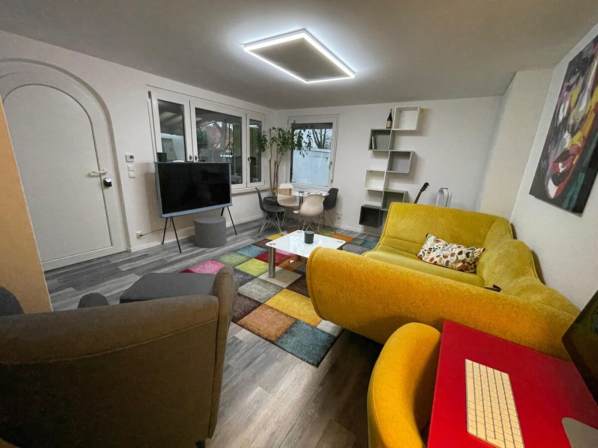 Großer Abgeschlossener Wohnbereich (1 Raum mit Badezimmer) in einem Einfamilienhaus im 1. Obergeschoss, mit Badezimmer, Küchenbereich und großer Terrasse. Das Appartement verfügt über einen eigenen Eingang und ist ca. 60 m ² groß. Zur Unterkunft gelangt man über einen schönen Garten. Das Haus befindet sich in einer ruhigen Nebenstraße. Parkplätze sind in der Regel auf der Straße vorhanden. Im Notfall in der Nachbarstraße mit kurzem Fußweg.