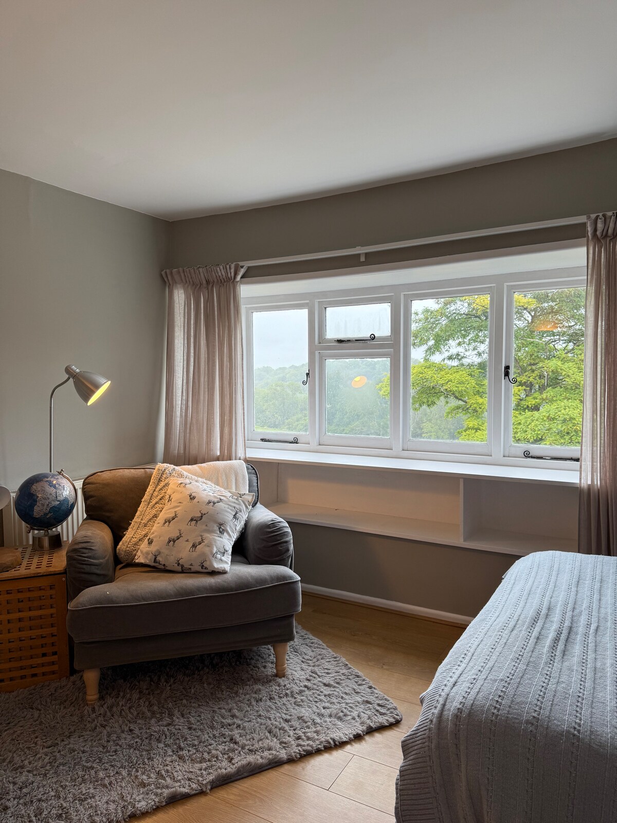 The Annexe is a light and airy bedroom and bathroom with sitting area and tea and coffee making facilities (and fridge). It has underfloor heating and plenty of clothes storage space. Patio and table and chairs if outside space is wanted. Train station is a seven minute walk. Parking space. Ten minute walk into the centre of Petersfield. Great for weekend breaks, business, weddings, events, walking or cycling trips.