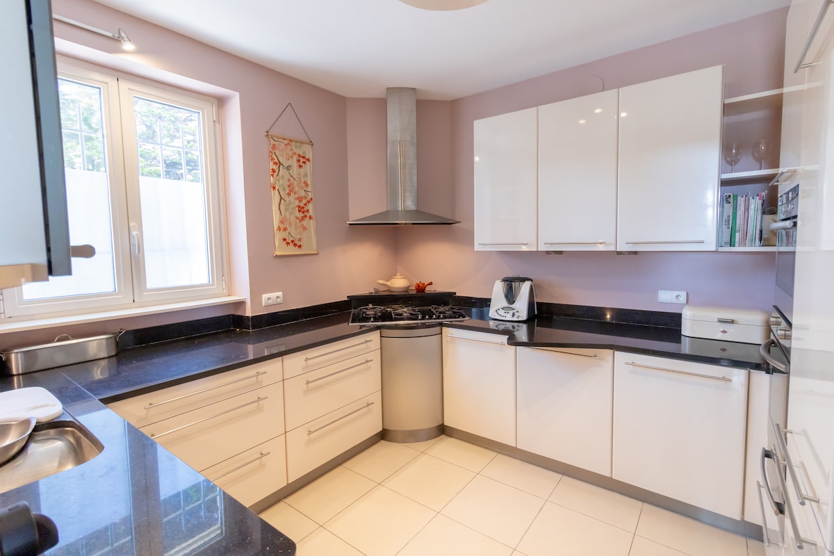 Charmantes Haus aus den 1930er Jahren, ideal für Familien, 2 Gehminuten vom Meer entfernt, in der Nähe von Geschäften, dem Strand und seinem Segelclub. Du lebst mit den Einheimischen, also ist es sehr gut ausgestattet. Telearbeit wird durch eine leistungsstarke Glasfaser-Internetverbindung und eine günstige Umgebung auf der Veranda mit Blick auf den Garten ermöglicht.