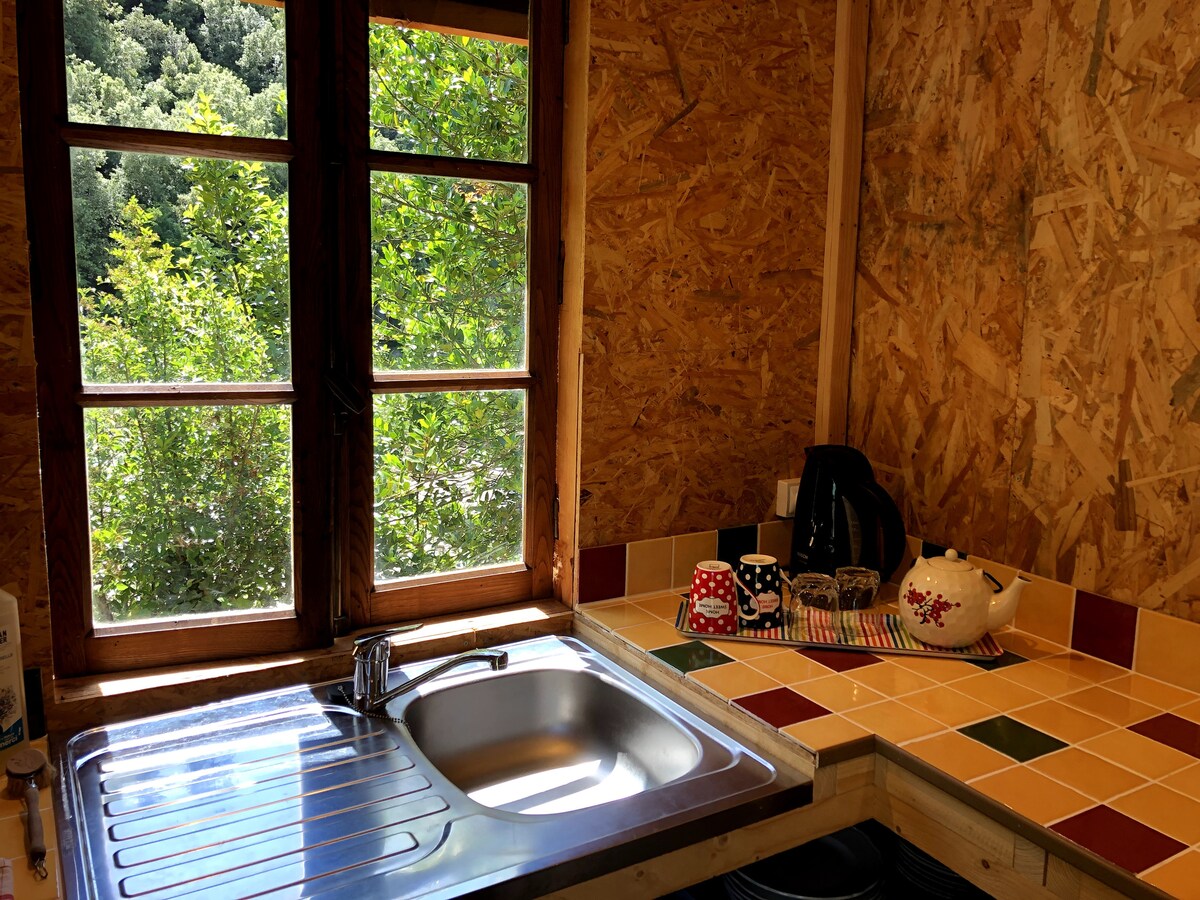 Auf halbem Weg zwischen einer Jurte und einer Hütte empfängt Sie unser kleines rundes Holzhaus zu einem erholsamen Aufenthalt. Sie können den Garten genießen, die Bäche, Wälder und Weiler in der Nähe entdecken; die Wanderwege (7 km) erreichen; oder Saint Jean du Gard Lassalle erreichen, um die Märkte und lokalen Aktivitäten zu genießen (ca. 15 km). Um die Trennung zu vervollständigen: Das Handy funktioniert erst in 4 km Entfernung. Wir bieten daher eine WLAN-Verbindung auf Anfrage.
