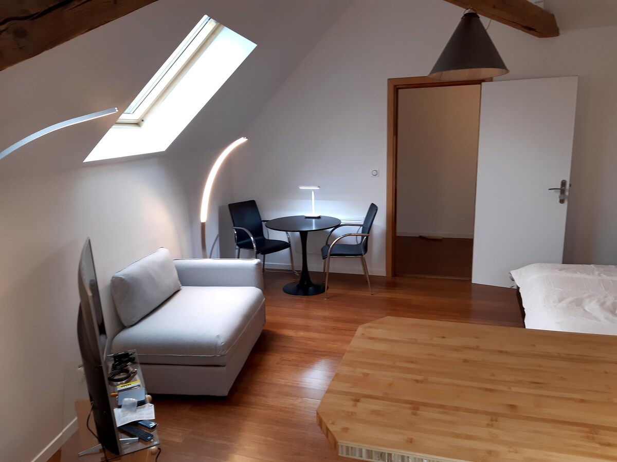 Bienvenus! ce nouveau studio a été construit dans l'annexe d'une ancienne maison patricienne. D'approximativement 35 m2 il est conçu et meublé pour le confort des hôtes faisant ainsi une base idéale dans le sud de l'Alsace Welcome! This new studio has been built in the old annex of a 19th century mansion. The studio is approx.35 sqm and furbished with attention to details for the comfort of our guests, making an ideal base during your stay in south of Alsace.