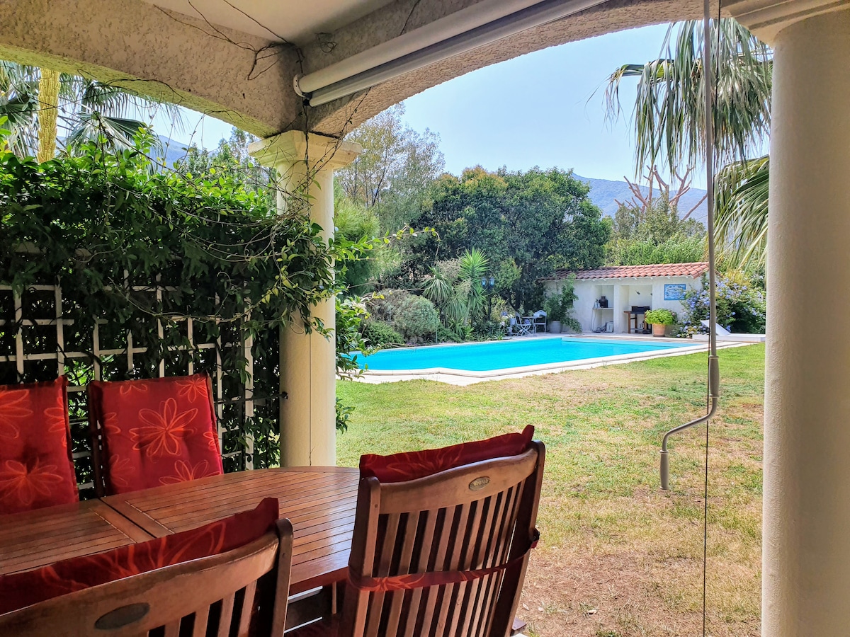 Es ist eine unabhängige Unterkunft mit Terrasse im Erdgeschoss meines Hauses auf einem grünen Hügel mit außergewöhnlichem Blick über das Tal. Privater Zugang. Privater Parkplatz. Kann 4 Personen beherbergen. Nicht empfohlen für Kinder unter 3 Jahren, da der Garten ein Spaliergarten ist. Zugang zum Pool des Anwesens von Juni bis Mitte September und zum Tennisplatz. Pool 50 m zu Fuß von der Wohnung entfernt. Die Unterkunft wird nach jeder Vermietung desinfiziert. 3 km vom Dorf und 15 km vom Meer entfernt. Am Fuße der Wanderwege.