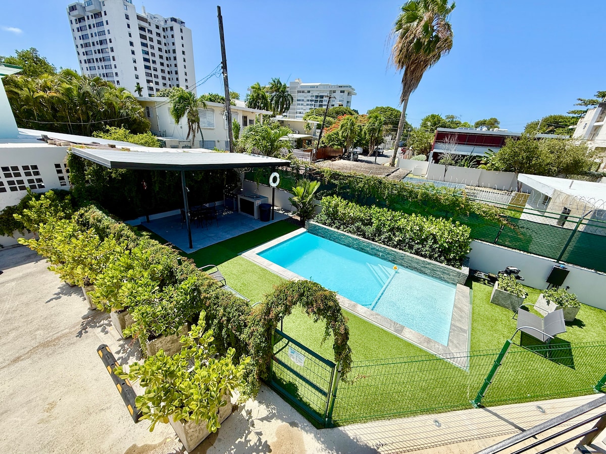 PRIVATE WOHNUNG mit EIGENEM EINGANG neben meinem Haus. Ausgestattet mit einer leistungsstarken zentralen Klimaanlage mit 1 Schlafzimmer mit QUEEN SIZE MEMORY GEL FOAM BED & Wohnzimmer Sofa. Kein Schlafsofa! Viele Annehmlichkeiten, damit du dich mit allem wohlfühlst, was für eine gemütliche Urlaubsoase benötigt wird! Kostenlose Parkplätze auf der Straße und einen 10-minütigen Spaziergang von der Isla Verde, Fast Foods, Sportbars, Restaurants und Supermarkt entfernt. Hotels, Casinos, Condado, Old San Juan und 6 weitere Strände ganz in der Nähe.