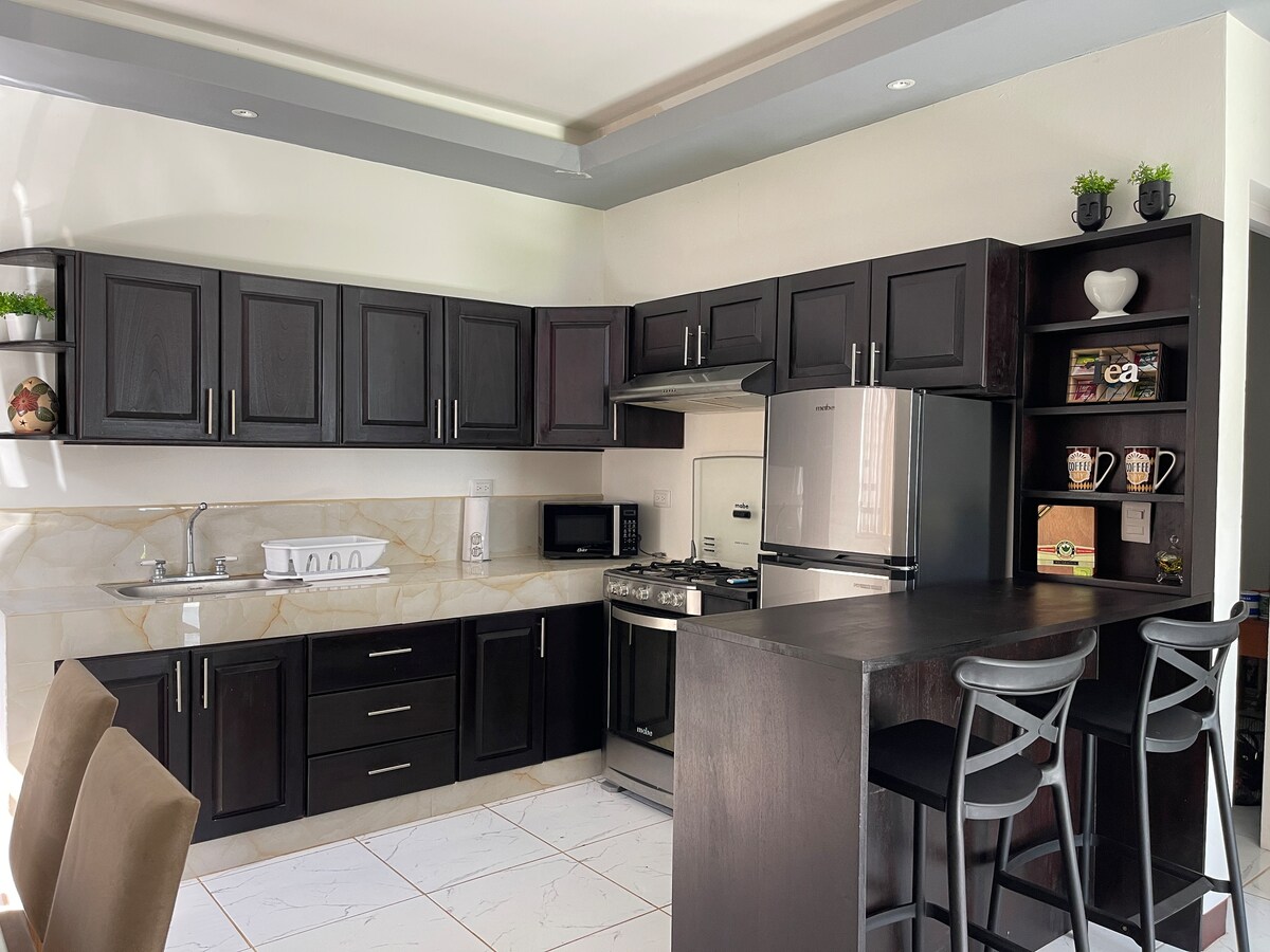 Genieße ein stilvolles Erlebnis in dieser zentral gelegenen Unterkunft! Dieses kürzlich renovierte Haus befindet sich in einer sicheren, geschlossenen Wohngegend. Es dauert eine siebenminütige Fahrt, um zum Einkaufszentrum Galerias Santo Domingo, zu Restaurants, Supermärkten, Apotheken und vielem mehr zu gelangen. Sie bietet eine private und ruhige Unterkunft für Urlauber und Geschäftsreisende. Die Unterkunft verfügt über ein komfortables Kingsize-Bett, 1 Queensize-Bett und 1 großes Bett. TV und Klimaanlage, Warmwasser, Waschmaschine und Trockner, Arbeitsbereich und eine herrliche Küche.