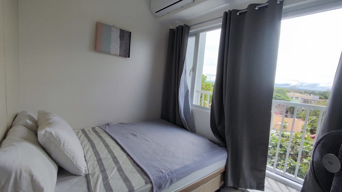 Ein schickes, modernes 1BR mit schnellem WLAN, einem 55-Zoll-Google-TV mit Netflix, Disney+ & Prime Video. Schlafe gut auf einem bequemen Queensize-Tagesbett + Schlafsofa und genieße eine entspannende beheizte Dusche. Komfortabel gelegen in der Nähe von Robinsons Mall.