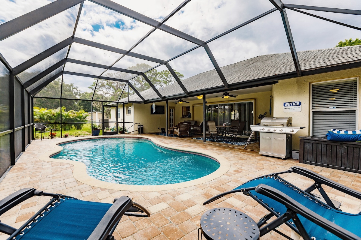 In Strandnähe und nur wenige Gehminuten von 5 Restaurants entfernt, darunter eines auf dem Wasser. Unser Platz ist weniger als 2 Meilen vom Nokomis Beach entfernt! Wir bieten dir Strandausrüstung, Wagen, Stühle, Handtücher und Sonnenschirm. Der Garten bietet einen entspannenden, schönen Rückzugsort mit Resort-Stil-Akzenten. Wir haben einen Gasgrill, um deinen Fang zu kochen, einen leistungsstarken Außenventilator und bequeme Sitzgelegenheiten im Schatten. Das Haus ist frisch modernisiert, offen und luftig. Du wirst eine voll ausgestattete Küche genießen.