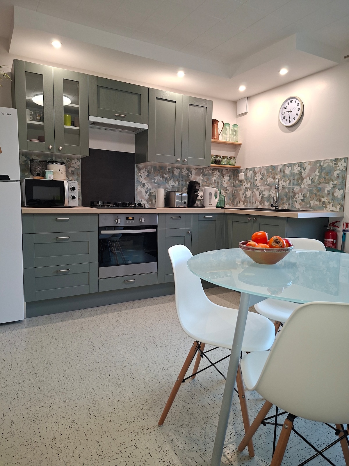 Entspannen Sie sich in dieser ruhigen und eleganten, frisch renovierten Unterkunft, die Folgendes umfasst: 2 Schlafzimmer (eines im Erdgeschoss und eines im Obergeschoss), 1 Badezimmer mit ebenerdiger Dusche, Waschmaschine, Wäscheständer, Bügelbrett und Bügeleisen. Eine Küche voll ausgestattet. Ein Esszimmer und ein großes Wohnzimmer. Ein Arbeitsbereich. TV & WLAN vorhanden. Pelletofen und Klimaanlage. Genießen Sie einen schönen Außenbereich mit Grill, Garten und geeigneten Möbeln. Haustiere erlaubt. Partys nicht erlaubt.