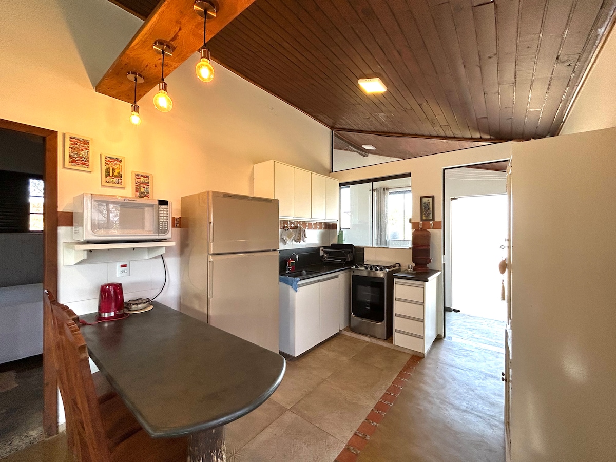 Entspanne dich in dieser ruhigen, stilvollen Unterkunft. Gelegen auf einem breiten Gelände in der Nähe der Serra da Bocaina in Lavras MG. Nur 230 km von BH und 440 km von SP entfernt. Im rustikalen Stil erbaut und in einer Lage, die es ermöglicht, in Kontakt mit der Natur zu sein, ohne auf die Annehmlichkeiten der Stadt zu verzichten. Die Unterkunft befindet sich zwar in der ländlichen Gegend der Stadt, ist aber nur 1,3 km (0,8 Meilen) vom Einkaufszentrum Cidade da Serra und 5 km (3 Meilen) vom Stadtzentrum entfernt (15 Minuten). Wenn du für die Entdeckung im Vinícula Alma Gerais kommst, sind wir eine großartige Option.