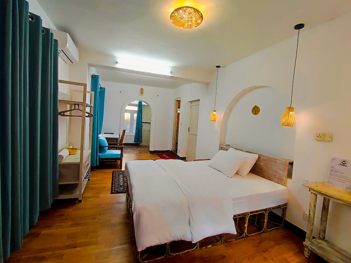 Entdecke unser Deluxe-Zimmer im Zentrum von Thamel - eine ruhige Oase in der Nähe von Einkaufsmöglichkeiten. Genieße ein gemütliches Kingsize-Bett, einen flexiblen Check-in/-out und eine ruhige, günstige Lage. Buche jetzt für einen angenehmen Aufenthalt.