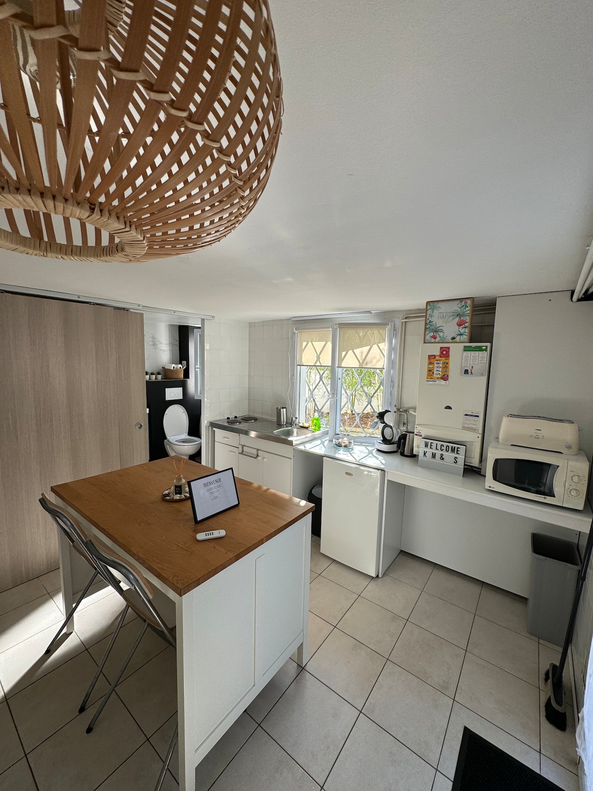 In unserem denkmalgeschützten Badehaus in der Nähe des Zentrums von Pornichet und seines Bahnhofs erwartet Sie eine Wohnung mit separatem Eingang. Das Zimmer verfügt über ein Doppelbett, einen Kleiderschrank und eine große Terrasse und einen Garten. Der zentrale Raum hat eine Küche mit den Elementen und Annehmlichkeiten, die es ermöglichen, völlig autonom zu sein. Das Duschbad / WC ist exklusiv für Sie reserviert. Sie können auch die Außenanlagen nutzen: Lounge, Chilenische...