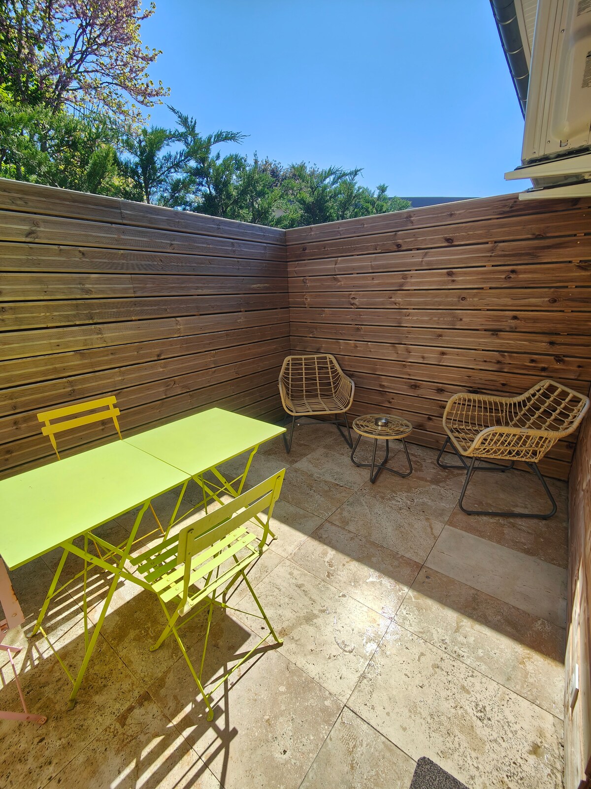 Willkommen im Herzen von Le Creusot! Entdecken Sie unsere charmante T3, ideal gelegen: 2 gemütliche Schlafzimmer, 1 Badezimmer, 1 voll ausgestattete Küche, 1 gemütliches Wohnzimmer und 1 sonnige Terrasse. -> Bettwäsche und Handtücher sind vorhanden -> Kostenlose Parkplätze in der Nähe (an der Straße) -> Glasfaser-WLAN / Netflix -> Babyausstattung auf Anfrage Ob Sie geschäftlich unterwegs sind, die Gegend entdecken oder sich entspannen möchten, unser T3 bietet alles, was Sie für einen angenehmen Aufenthalt in Le Creusot benötigen.