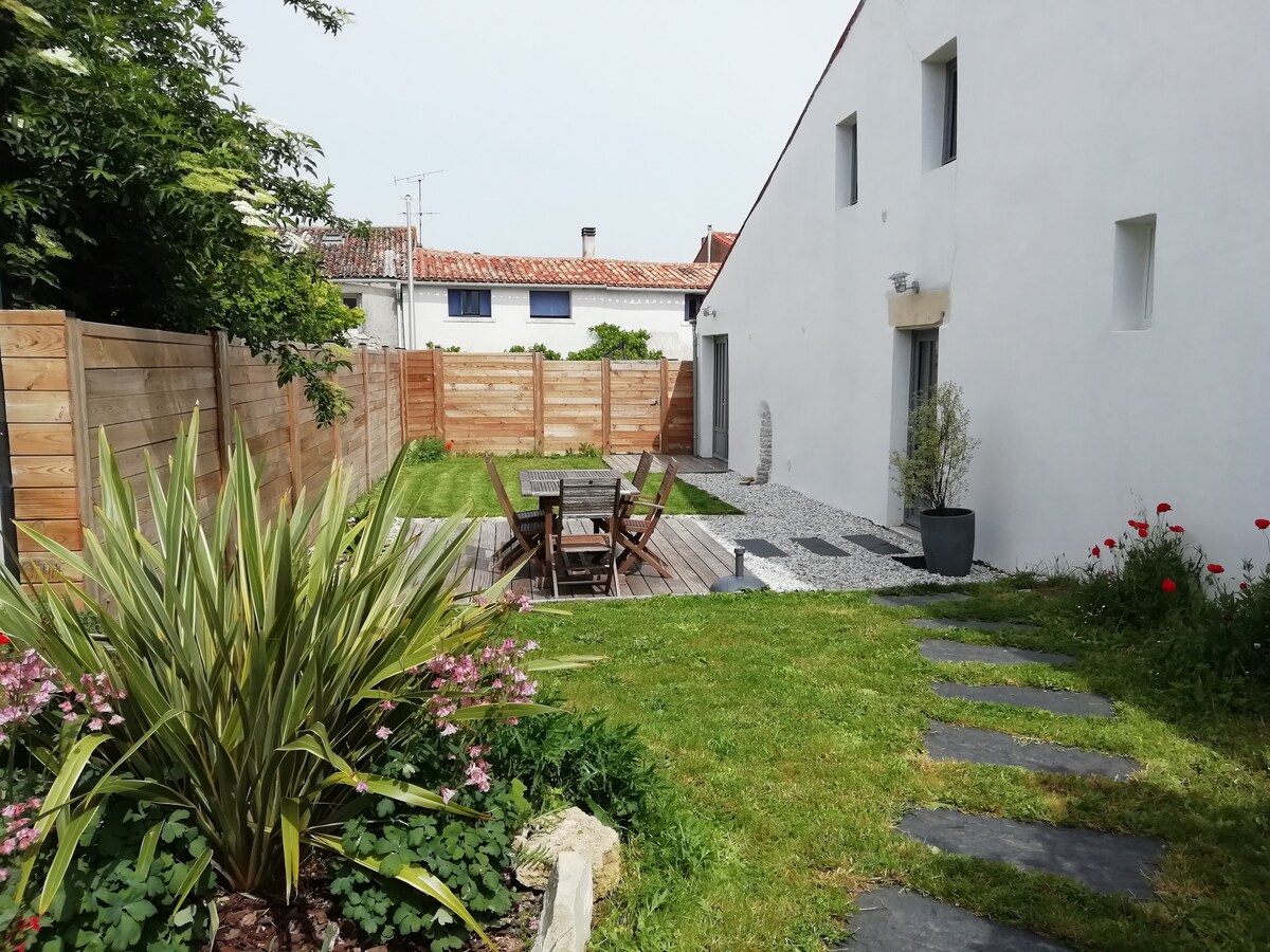 Nur wenige Schritte vom Meer entfernt befindet sich unser geräumiges Haus von 130 m2, das als "Möblierte Ferienwohnung 3⭐️" eingestuft ist, in Lauzières (Austernfarmdorf vor den Toren von La Rochelle und in der Nähe der Brücke der Ile de Ré). Sie besteht aus 2 klimatisierten Schlafzimmern im Obergeschoss und einem Schlafzimmer im Erdgeschoss, einem Duschbad, einem Badezimmer, einem Wohnzimmer (40 m2) und einer großen, klimatisierten Küche (30 m2) mit Blick auf einen intimen Außenbereich.