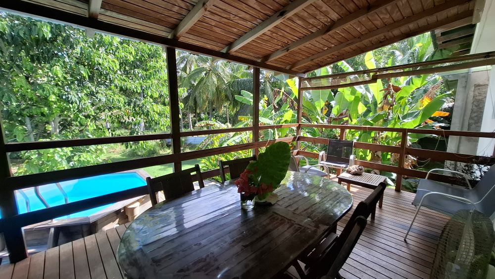 Charmanter Holzbungalow, 3 Sterne (für 2 Personen, aber Platz für bis zu 4 Personen) in unmittelbarer Nähe zum Meer und seinen Stränden. Er wurde im Geist der "Hütte" gebaut und befindet sich in einem gut belüfteten Ort am Eingang unseres Gartens. Genießen Sie beim Aufwachen den Sonnenaufgang auf der Terrasse. Beim Schlafengehen werden Sie vom Duft von Ylang Ylang berauscht und vom Gesang der Frösche eingelullt.