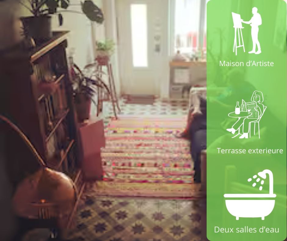 Charmantes Ferienhaus ca. 50 m2 unter dem Dach, 1. Stock eines Nebengebäudes (rechts auf dem Gesamtfoto), Grundstück von 1.700 m2, auf dem die sehr diskreten Besitzer leben. Einziges Ferienhaus vor Ort. Schwimmbad (7x4m), Spa (2/4 p. mit Blasen), Sommerküche (Plancha), Essbereich/Wohnzimmer, Tischtennis, Trampolin, Kinderbereich (Hütte, ...) und Bouleplatz zur Verfügung (Selbstbedienung). Parkplatz: reserviert und gesichert Pool: Mai bis Okt (gesichert) Spa: das ganze Jahr (von November bis März 24 Stunden vor Anreise)