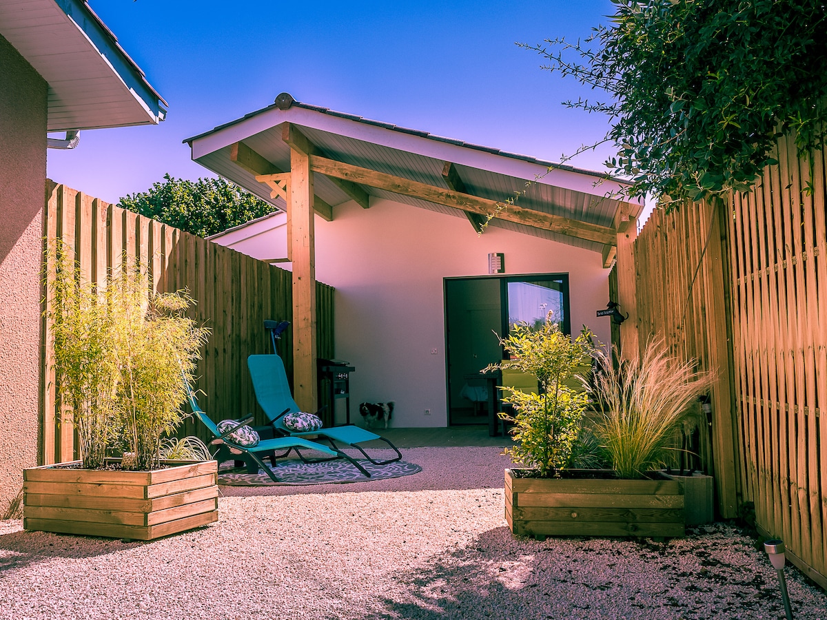 Es ist ein sehr ruhiges und perfekt ausgestattetes Haus im Teich, das 2 Schlafzimmer bietet und bis zu 6 Personen aufnehmen kann. Wir leihen Ihnen Fahrräder, Ausrüstung für Kinder und ein Plancha. Die Terrasse und der Garten laden zum Verweilen ein. Sie können ein Auto kostenlos parken. Dieses Haus ist der perfekte Ausgangspunkt, um das Becken zu entdecken: Sie sind 20 Minuten von Arcachon, der Pyla und den Stränden entfernt. Sie erreichen Bordeaux zu Fuss in 15 Minuten.