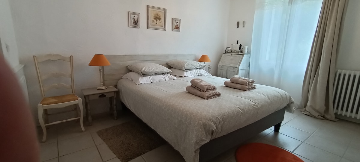 In einem komplett renovierten provenzalischen Bauernhaus aus dem 18. Jahrhundert gelegen, biete ich Ihnen eine Suite, die aus einem Elternschlafzimmer, einem Schlafzimmer für Kinder oder ein befreundetes Paar, einem Design-Badezimmer, einem kleinen Wohnzimmer, das für das Frühstück, aber auch für die Arbeit und modulare Besprechung nach den Bedürfnissen eines Gartens, eines geschlossenen Parkplatzes und eines kleinen Pools 3 m × 3 m nur für Sie nicht geteilten Raum verwendet werden kann.