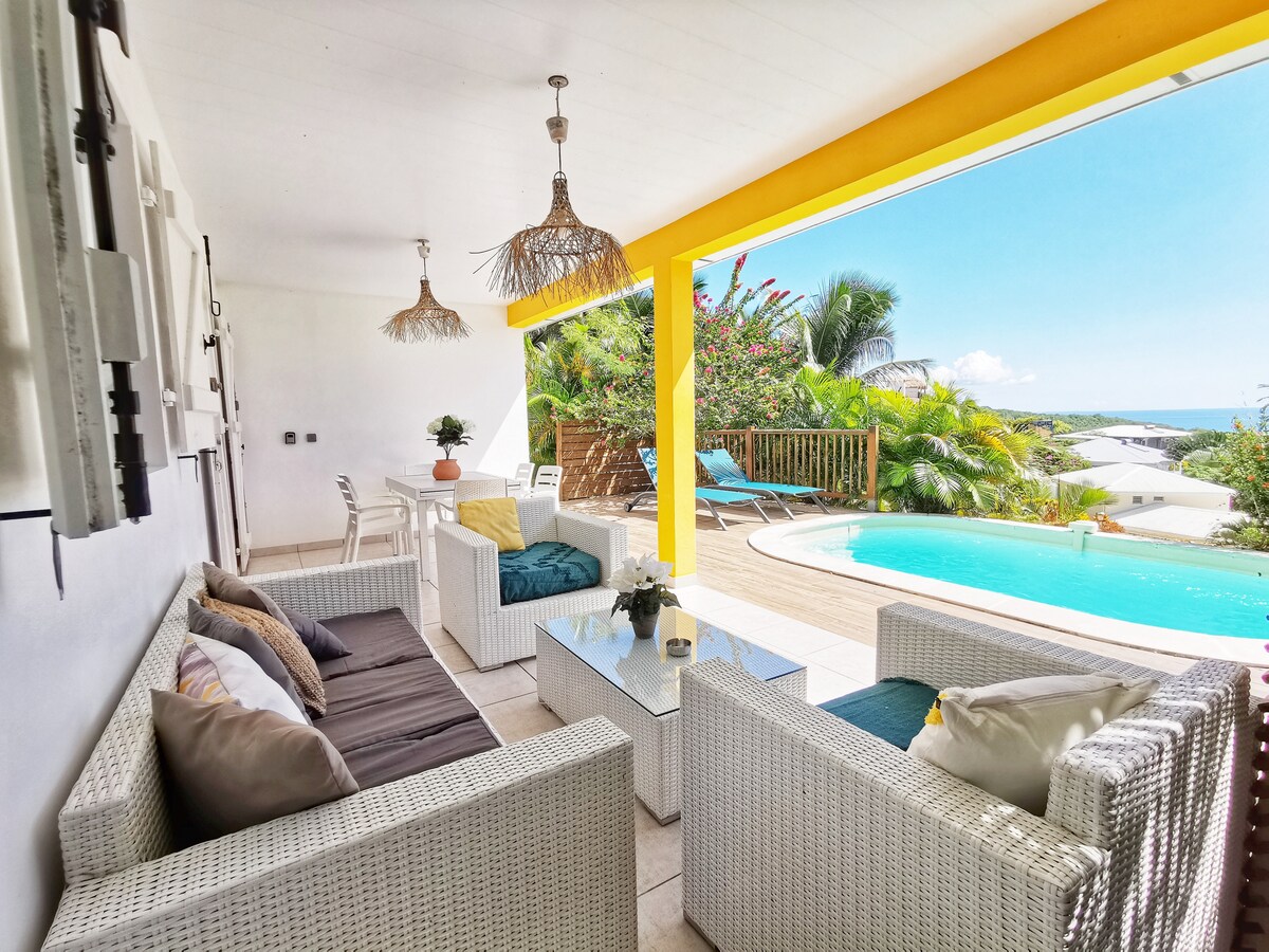 Ideal für zwei Paare oder Familien mit absoluter Privatsphäre dank der beiden Suiten, in der Gemeinde Sainte-Anne im Süden von Martinique. Gut gelegen für Liebhaber von weißen Sandstränden, Wanderungen und Wassersport, sind Sie weniger als fünfzehn Minuten von Le Marin und seinem schönen Yachthafen oder dem Dorf Sainte-Anne entfernt. Eine voll ausgestattete Küche, ein Wohnzimmer mit Starlink - Net High Speed Satellite und eine Terrasse mit privatem Pool.