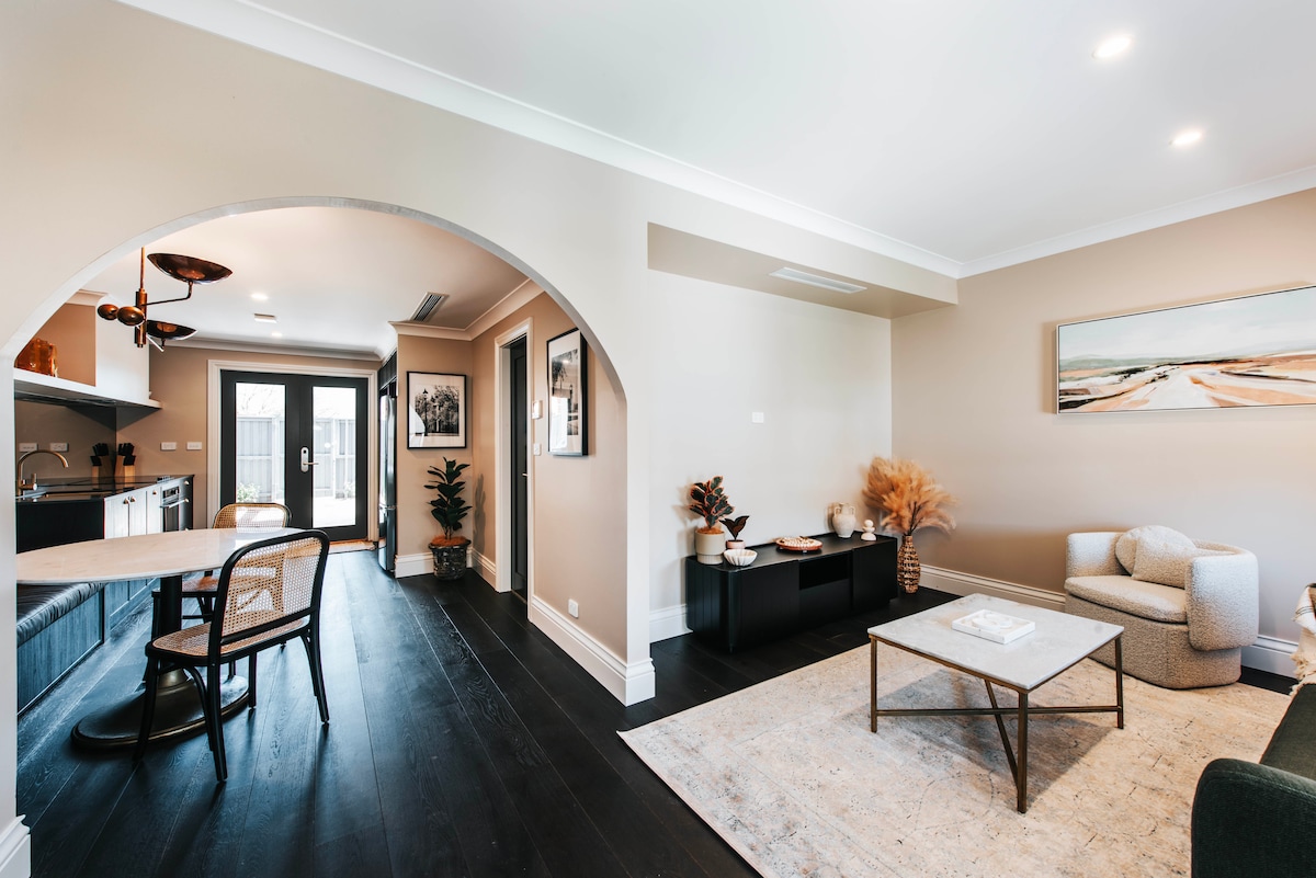 Abercorn is an elegant, architect-designed country house set on a lovely farm, surrounded by Mudgee's famous vineyards and only 7 minutes from Mudgee CBD. Spacious, stylish, with light-filled interiors and views from every window of the farm, vineyards and countryside. Personal recommendations for Mudgee provided after you book, and a complimentary bottle of beautiful local wine on arrival. Abercorn is a Holiday Home of the Year for 2025. Not available for parties or weddings.