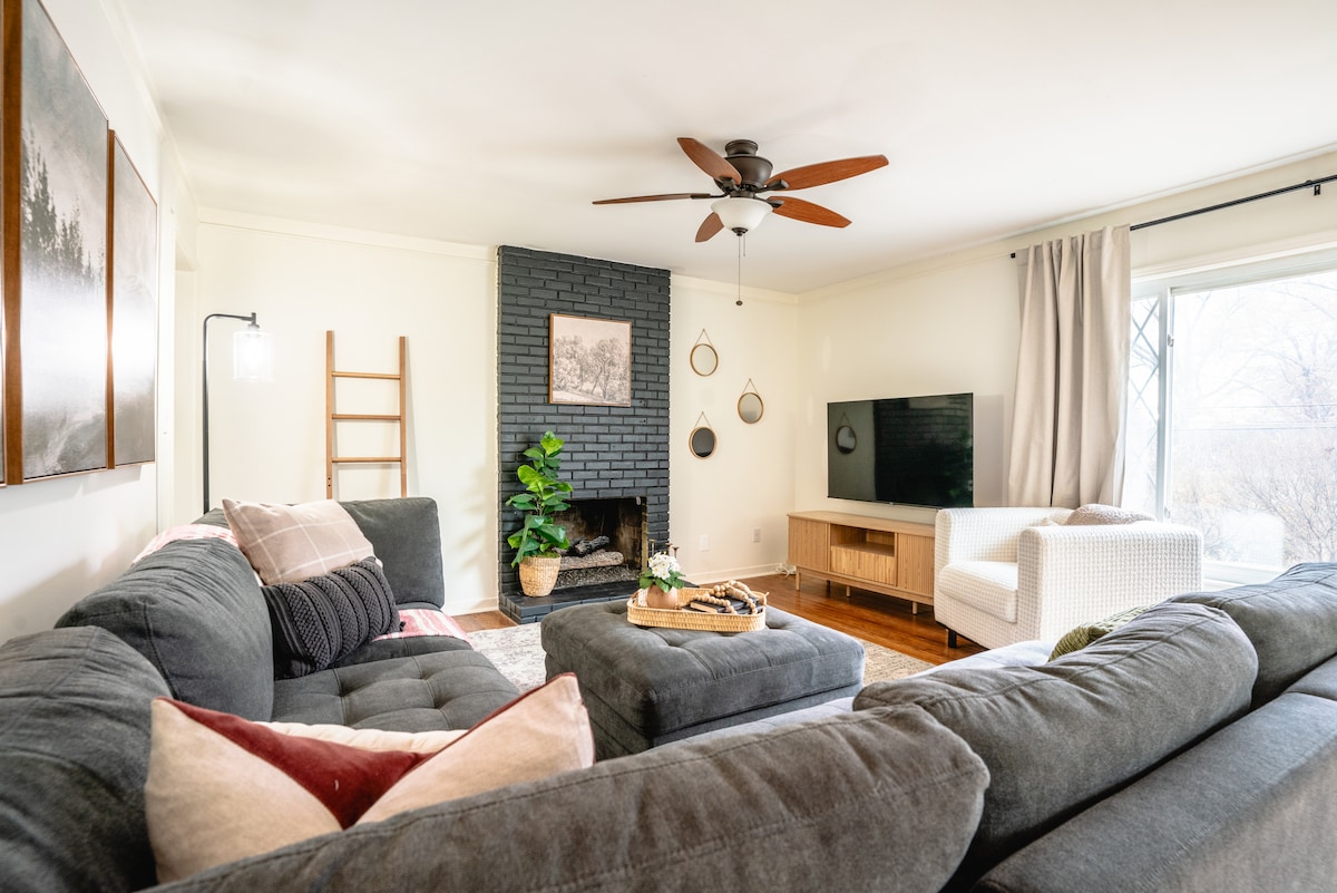 Genieße ein stilvolles Erlebnis, während du dich in dieser zentral gelegenen Unterkunft entspannst und erholst. Dieses Haus wurde kürzlich renoviert und bietet alles, was du brauchst, mit 3 Schlafzimmern und 2 Bädern und nur wenige Minuten von allem entfernt. Unser Haus verfügt über moderne, stilvolle Möbel, Plüschbetten, eine voll ausgestattete Küche, eine voll ausgestattete Waschküche und 1-Gbit-WLAN für Arbeit oder Streaming. Der Keller verfügt über Tischtennis und es gibt einen eingezäunten Hof für Haustiere und Kinder zum Spielen. Perfekt für alle Altersgruppen!