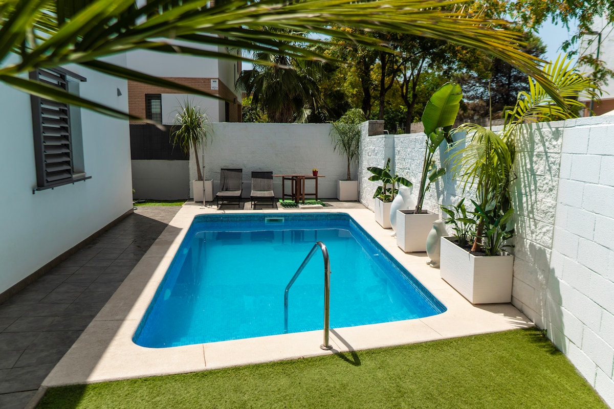Entspanne dich in einem luxuriösen, modernen und vielseitigen Haus mit privatem Pool in der historischen römischen und arabischen Gegend von Aljarafe. Nur 15 Minuten 11 km von Sevillas pulsierender Innenstadt entfernt, ist dieses geräumige, hochwertige Haus dein perfekter Rückzugsort. Genieße eine Tasse Tee im atemberaubenden privaten Dachgarten, der von lokalen Handwerkern durchdacht mit maßgeschneiderten Möbeln gestaltet wurde. Das anspruchsvolle Interieur verbindet moderne Eleganz mit urbanem Flair und bietet tadellosen Stil. Genieße das ganze Jahr über Dips in deinem privaten Pool!