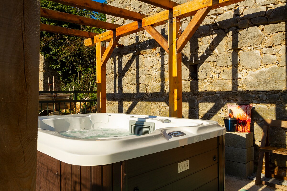 Entfliehe in eine private Luxusvilla inmitten der Natur, nur 5 Minuten von Crikvenica entfernt. Genießen Sie einen beheizten Pool, einen Whirlpool im Freien, eine Weinecke und einen ruhigen Garten. Perfekt für Familien oder Freunde, die Privatsphäre in der Nähe der Adriaküste suchen. Mit 4 Schlafzimmern bietet die Villa bequem Platz für bis zu 8 Gäste. Draußen bietet ein privater Pool an heißen Tagen Erfrischung und kann auf Anfrage und gegen Aufpreis beheizt werden. Der Bereich mit den Liegestühlen liegt die meiste Zeit des Tages im Schatten und bietet einen schönen Blick auf die Landschaft.