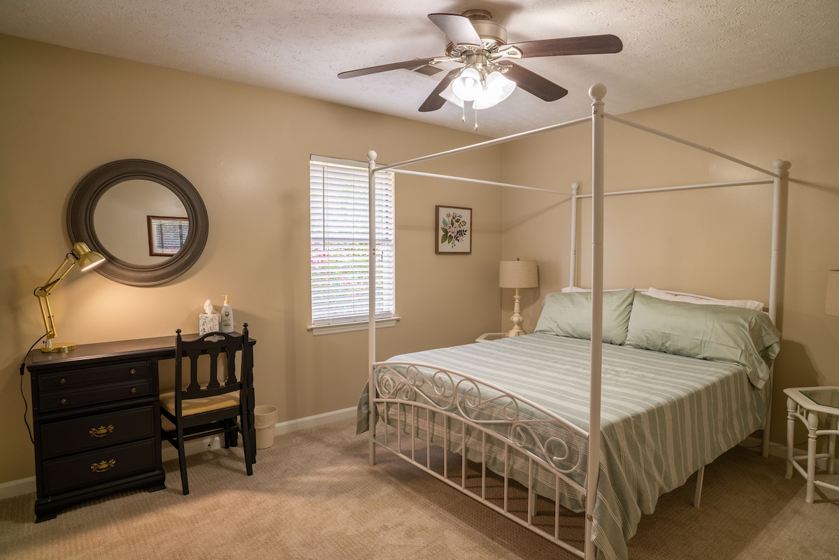 Diese gemütliche 1-Zimmer-Wohnung ist perfekt für einen Aufenthalt in Auburn. Gegenüber der AU Vet School & Equestrian Center und weniger als 2 Meilen vom Jordan-Hare-Stadion und der Innenstadt entfernt, ist dieser Ort ideal für alles AU. Funktionen, die du lieben wirst: Queensize-Bett und ausziehbares Schlafsofa High-Speed-WLAN und zwei große Flachbildfernseher Voll ausgestattete Küche Waschmaschine und Trockner in der Einheit Badewanne mit den wichtigsten Dingen Gemeinschaftspool und viele Parkplätze Rollstuhlgerechte Eigentumswohnung *keine Rampe vom Parkplatz