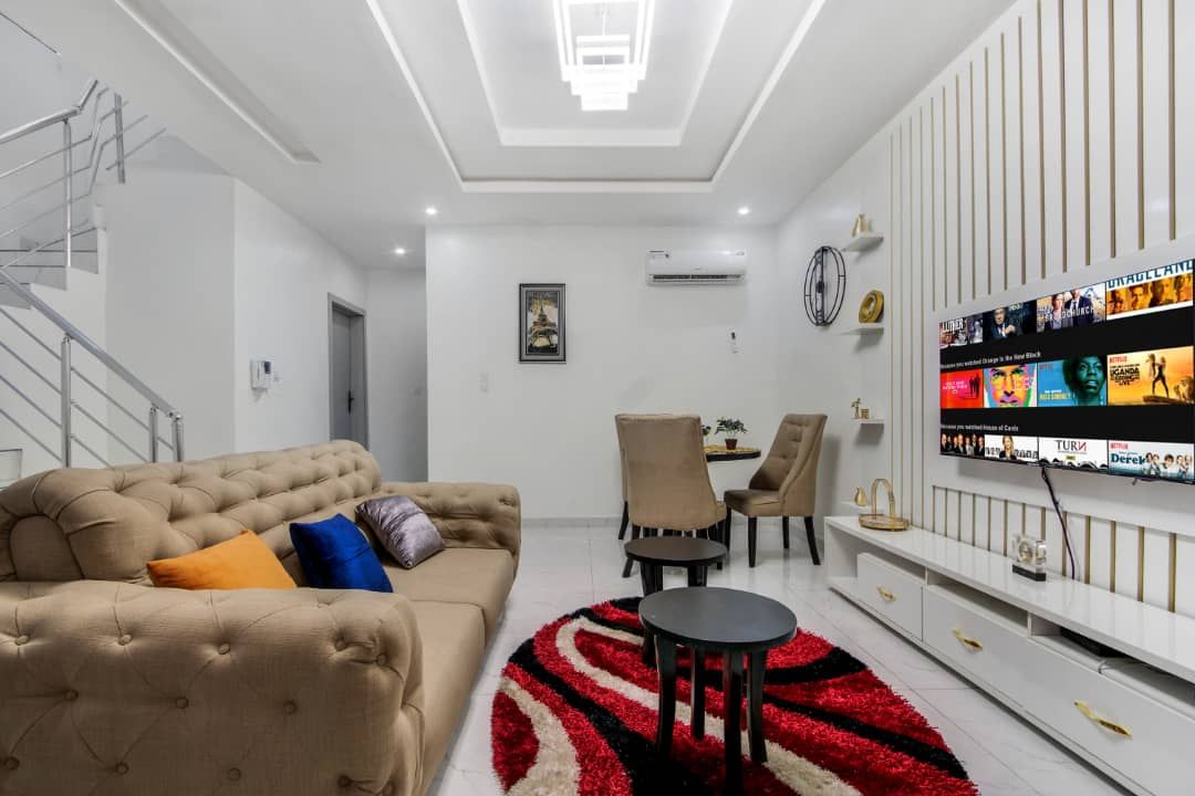 Relax with the whole family at this peaceful place to stay. Features: Gated and Secured mini Estate, 24/7 Power Supply Serene environment Very fast internet Netflix / YouTube En-suite rooms Daily housekeeping Dedicated car park space Equipped kitchen Washing machine Tastefully furnished “Perfect for Pictures “ This place will leave you with the unforgettable memories.