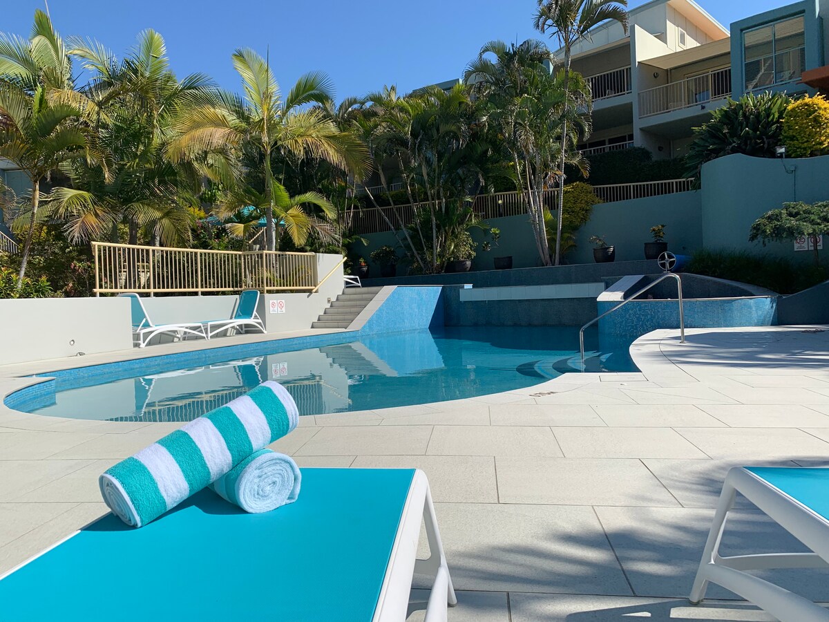 Einladende und komfortable Studiowohnung in einem privaten, abgeschiedenen Flügel des Resorts mit Gartenblick. Entfliehe für eine kleine Auszeit. Entspanne dich am Pool und genieße das ganze Jahr über Mahlzeiten im Freien oder spaziere zu den unberührten Stränden und speise in lokalen Cafés und Restaurants. Das Resort verfügt über gesicherte Parkplätze, einen Tennisplatz, ein Fitnessstudio, angelegte Gärten und ein Café/eine Bar am Pool. Salt Village hat Restaurants, Einzelhandelsgeschäfte, eine Bar, Spirituosen und einen Minimarkt. Genieße Wander-/Radwege und Tagesausflüge nach Byron, Gold Coast, Mt. Warning.