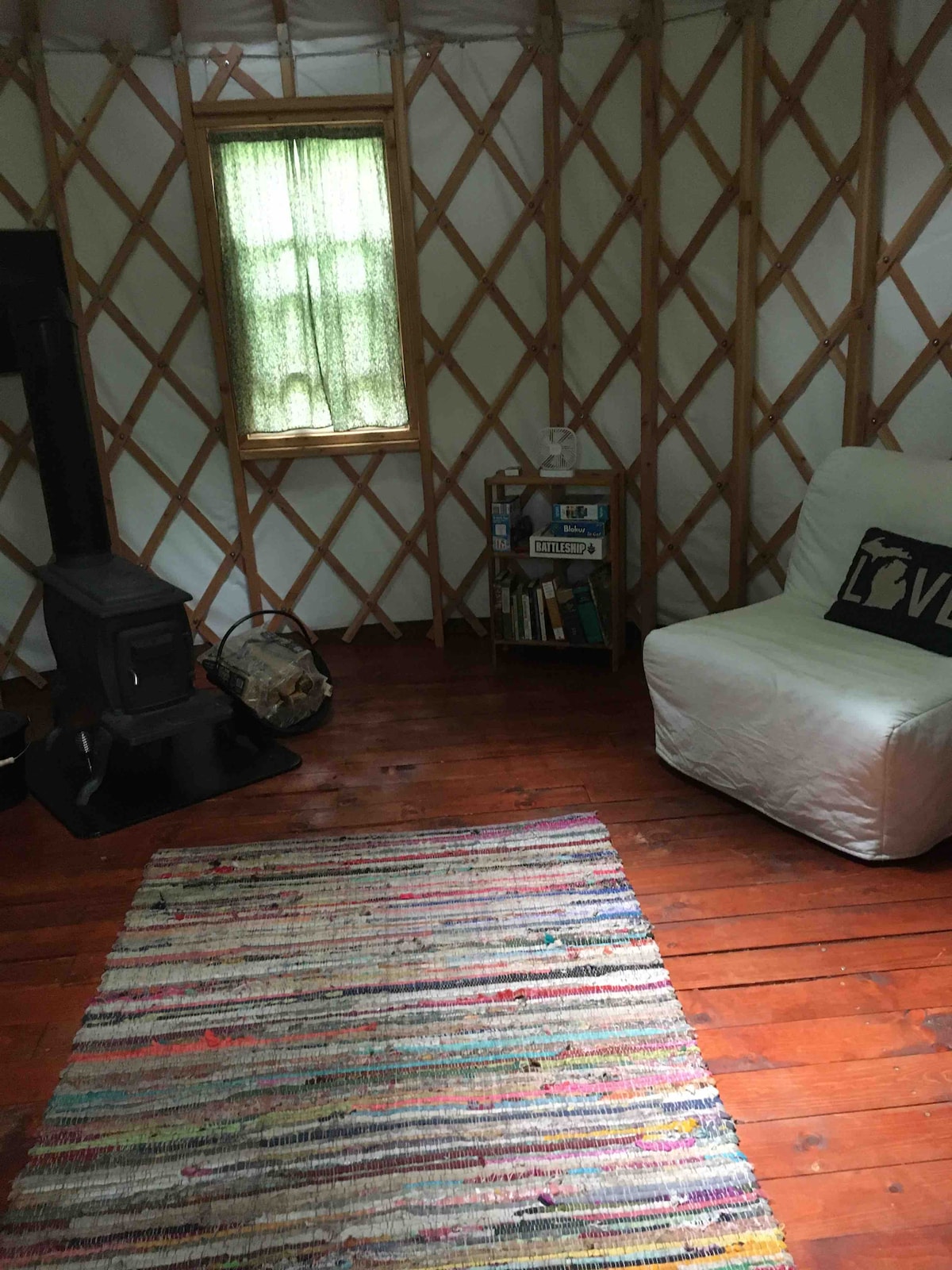 Die Jurte befindet sich auf einer 30 Hektar großen Equine Rescue Ranch. Es ist eine 4 Saison 20 ft Jurte mitten auf der Ranch mit einer wunderschönen Aussicht auf Mustangs (American Legends). Alle Erlöse aus der Vermietung gehen zurück zur Rettung. Es ist elektrisch, ein Nebengebäude ist nur einen kurzen Spaziergang entfernt, ein kalter Wasserhahn in der Nähe. Nur wenige Minuten vom Pleasant Lake zum Schwimmen, einem lokalen Weingut und 38 Minuten von Ann Arbor entfernt. Wir bieten Touren und Interaktionsmöglichkeiten mit Pferden, einschließlich American Mustangs!