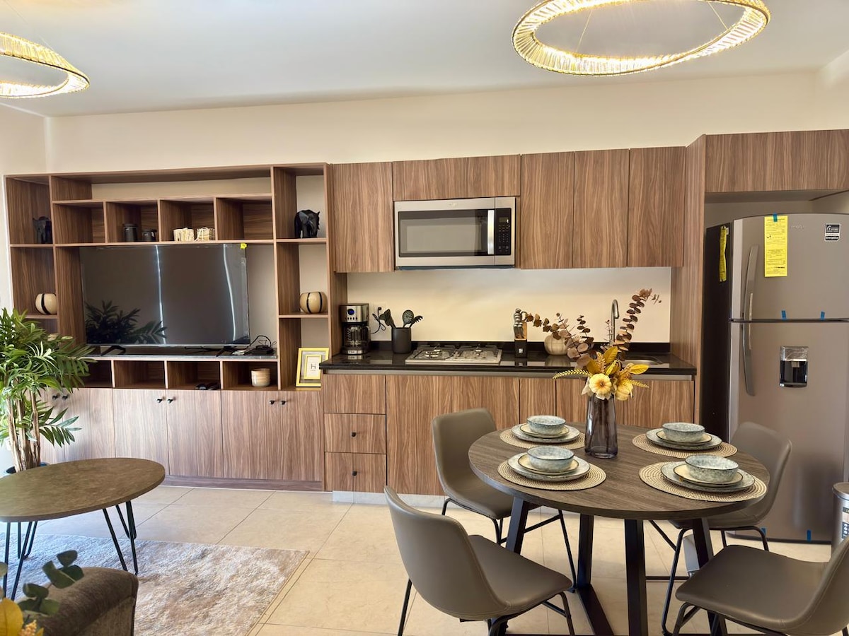 Gemütliche und funktionale Wohnung. Genießen Sie einen praktischen und ruhigen Aufenthalt in dieser Wohnung, die sich sowohl für Geschäfts- als auch für Erholungsreisen eignet. In einer strategisch günstigen Gegend von Torreón gelegen, wohnst du in der Nähe von Geschäften, Hauptverkehrsstraßen und wichtigen Einrichtungen.