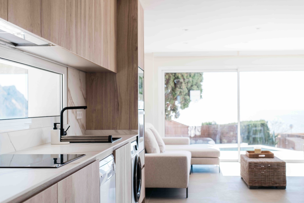 Exklusive Villa für 9 Personen mit spektakulärem Blick auf das Meer und den Peñón de Ifach. Sie wurde 2026 renoviert und bietet einen privaten Pool, eine Außenküche mit Grill sowie mehrere Terrassen und Veranden. Die Unterkunft befindet sich in einer ruhigen Gegend zwischen Calpe und Benissa, nur wenige Gehminuten vom Strand La Fustera und von Cala y Puerto Los Bassetes entfernt. Ideal für Familien und Gruppen, die einen privaten Rückzugsort für ihren Urlaub, zum Homeoffice oder als Ausgangspunkt für die Erkundung der besten Radrouten an der Costa Blanca suchen.