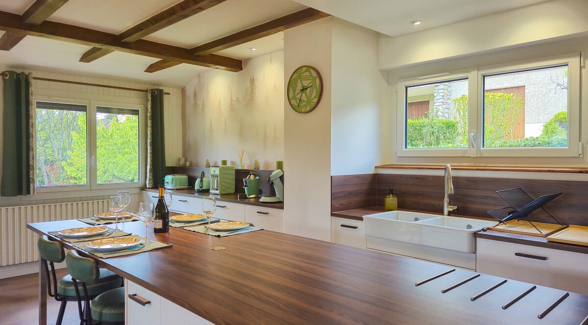 Neue, moderne und gemütliche Unterkunft. Ideal für 2 Paare oder eine Familie mit 3 Kindern. Es verfügt über 2 Schlafzimmer mit Duschbad, ein großes Wohnzimmer mit Küche, ein Zwischengeschoss mit TV-Bereich und eine Terrasse mit nordischem Bad in kostenlosem und privatem Zugang. Die Betten sind bei der Ankunft gemacht und Handtücher sind vorhanden. Das Chalet befindet sich im Weiler Les Marches, 3 km vom Resort entfernt. Wir stellen dir einen überdachten Parkplatz im Resortzentrum zur Verfügung.