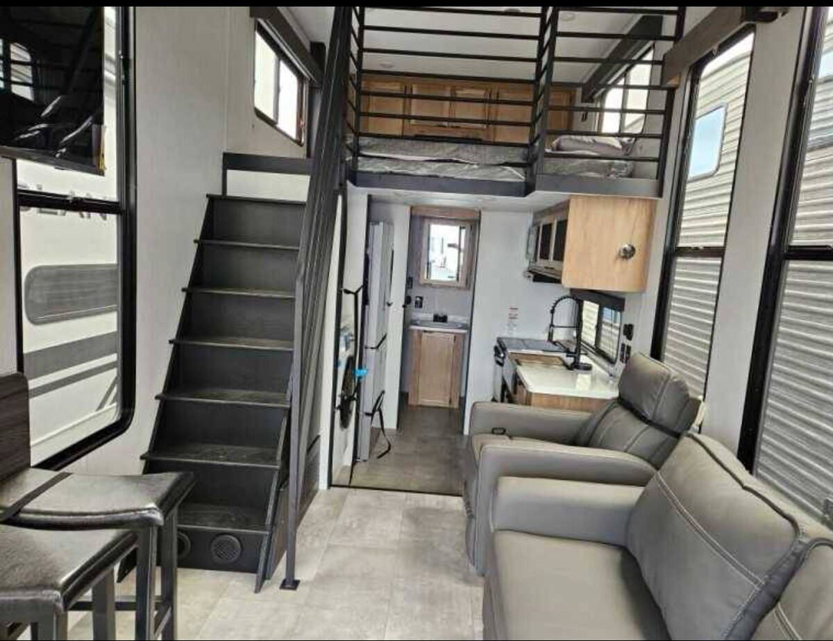 Entfliehe einem geräumigen und gemütlichen Spielzeugschlepper, zentral gelegen zwischen Packwood, Morton und dem historischen Mt. St. Helens. Dieser Spielzeugtransporter verfügt über ein Queensize-Doppelbett, eine versteckte Zweibettzimmerwohnung, die sich perfekt für einen jungen Erwachsenen eignet, einen Wohnbereich mit einer viersitzigen Liegecouch mit beheizten und Massagesitzen und einem warmen elektrischen Kamin, um die Stimmung zu schaffen. Ein separates Zimmer mit Doppelstockbetten, zwei Sofas, einem Esstisch und einem privaten Gästebad, ideal für Familien. Genieße das, was East Lewis County zu bieten hat!