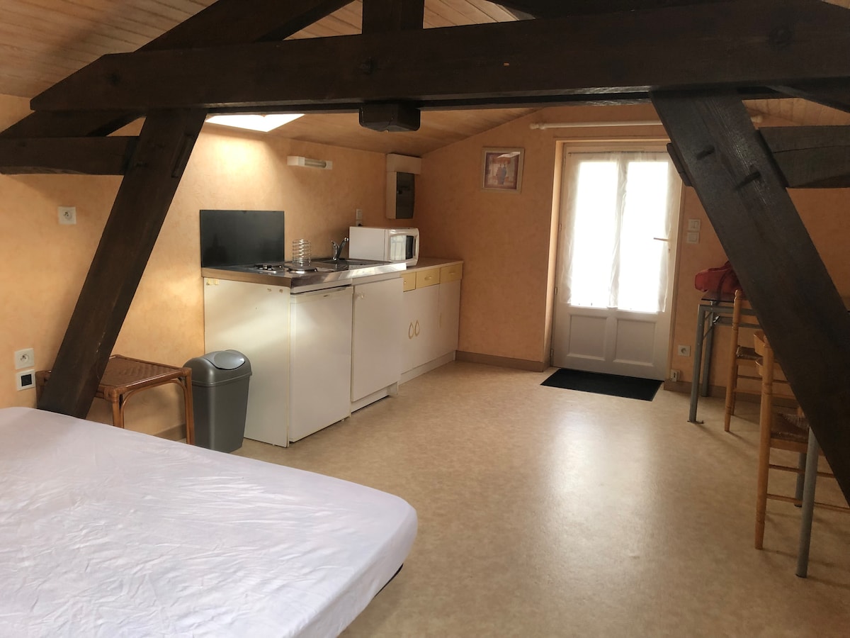 Angenehmes Studio in einem tollen Haus Mélusine, voller Charme. Ihr sonniges Zimmer blickt auf einen schönen Garten. In Ihrem privaten Bad und Küchenzeile passt sich der jahrhundertealte Parkettboden der ebenerdigen Dusche, dem Stein und dem zeitgenössischen und künstlerischen Design an. Private Toilette auf dem Treppenabsatz. Bettwäsche und Handtücher sind vorhanden. Ein 15 m² großer Entspannungsbereich erwartet Sie im Garten. Im Umkreis von 200 Metern den Bahnhof, 2 Restaurants, Geschäfte und das historische Zentrum.