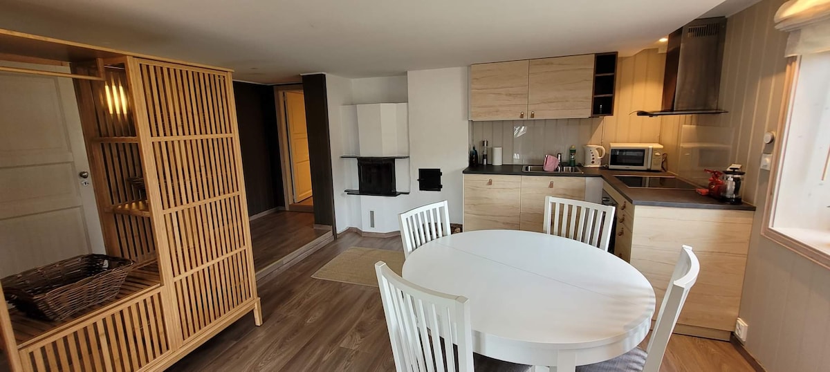 Lehne dich zurück und entspanne dich in diesem ruhigen und modernen Raum. Mach dir einen schönen, frisch gebrühten Cappuccino oder Espresso und genieße ihn auf der Couch draußen oder drinnen. Genieße eine Regendusche mit gedämpfter Beleuchtung im Badezimmer, während deine Musik über das Sonos-System in allen Räumen der Wohnung spielt. Oder arbeite vom Küchentisch aus, bevor du im Gulskogen-Zentrum auf der anderen Straßenseite einkaufen gehst, oder gehe 400 Meter zum Zug, der dich in 30 Minuten direkt nach Oslo bringt.