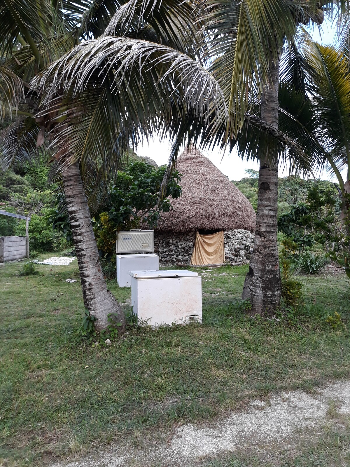 Eine kleine Familie, um dir ihren Garten anzubieten, dir einen Campingplatz anzubieten, deine Zelte mitzubringen, wir warten auf dich, kommen, um das Leben als Stamm, unsere Kultur, unser Wissen und mehr zu entdecken... Land, das unter den Kokospalmen eingezäunt ist, vom Rauschen der Wellen und dem Gesang der Hähne geläutet wird, ideal für eine große Familie oder eine Einzelperson... willkommen in unserem Haus hat den ausgetretenen Stamm auf Lifou.