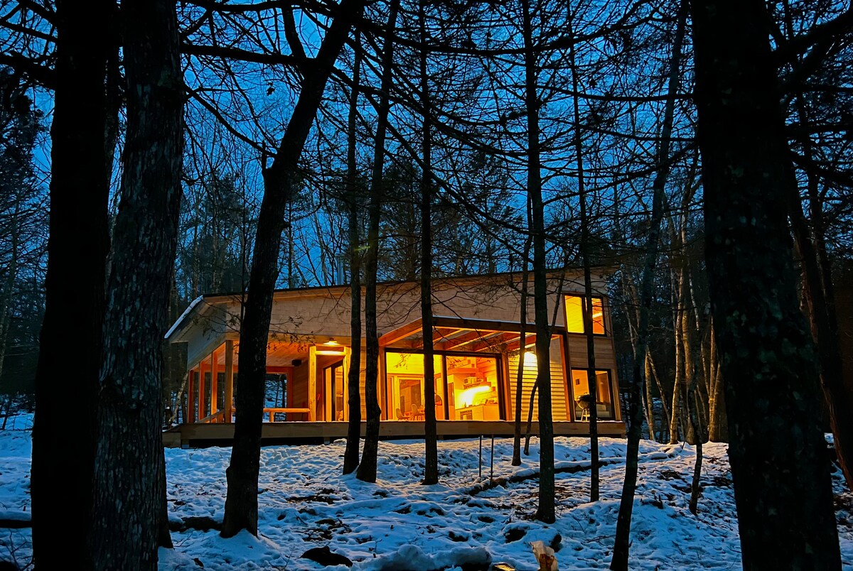 Unique Scandinavian-inspired cabin with sauna, wood fired hot tub, huge soak tub, and 3 additional separate buildings up the hill that serve as additional bedrooms / offices / workout spaces, nestled in 5 acres of beautiful solitude on a tidal cove in coastal Maine, 7 minutes from downtown Bath. Kayaks included :)