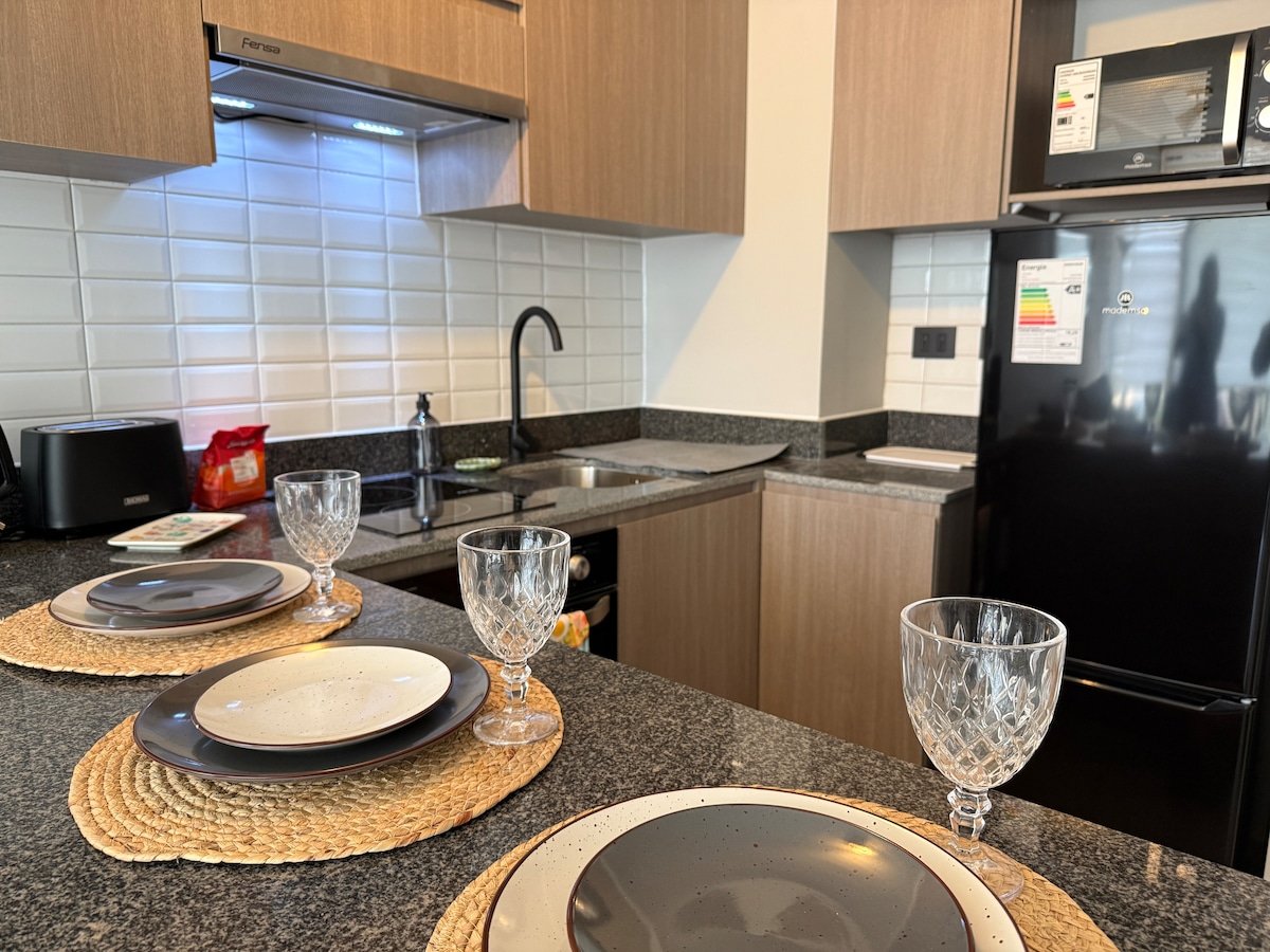 Disfruta de la comodidad y estilo en este departamento full equipado, ubicado estratégicamente con acceso a Av. Picarte y Costanera, a solo minutos del centro de Valdivia. - Living comedor. - Cocina full equipada: horno eléctrico, campana, microondas, lavavajillas, refrigerador, hervidor, tostador, cafetera y licuadora. - Baño con termo eléctrico, plancha, secador de pelo y toallas. - Dormitorio con cama de dos plazas. - Terraza. - Wifi 800mbps - Estacionamiento techado al interior del edificio.