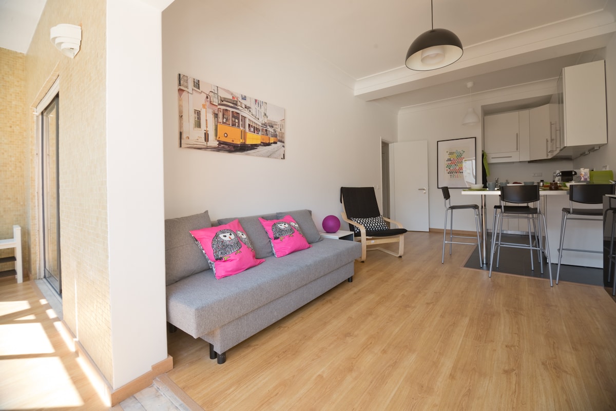 Helle 1-Zimmer-Wohnung in Baixa in der Nähe der Kathedrale und der Straßenbahnlinie 28