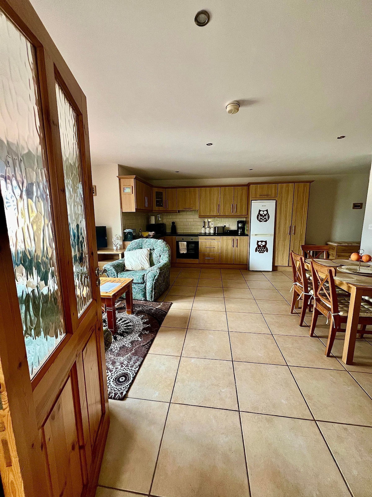 Dieses Ferienhaus mit 3 Schlafzimmern befindet sich auf dem Grundstück unseres eigenen Privathauses, neben dem Haupthaus. 1 Schlafzimmer mit eigenem Bad im Erdgeschoss mit 2 Einzelbetten und 2 Schlafzimmern im ersten Stock, jeweils mit einem Doppelbett und einem Einzelbett. Sichere private Parkplätze vor Ort. Das Hotel liegt eine 8-minütige Fahrt (5 km) von der belebten Stadt Ennis und 34 km vom schönen Strand Lahinch entfernt. Eine kurze Fahrt zur berühmten Burren-Region und 40 Minuten von den Cliffs of Moher entfernt.
