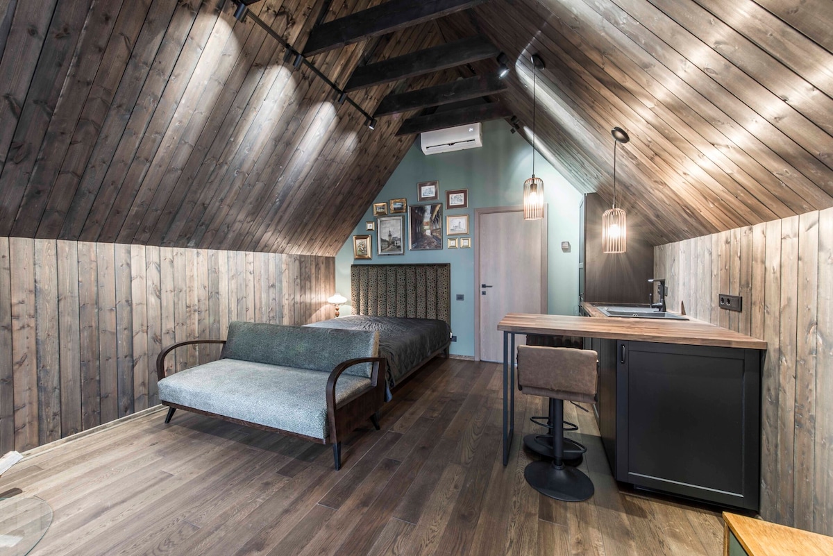 Deluxe beherbergt Unternehmen und Familien bis zu 8 Personen (4+4). Hier findest du: voll ausgestattete Küchenutensilien sibirische Wacholderwand panoramafenster zur Biegung des Flusses Hütten mit 2 Schlafzimmern. Haupt- und Schlafcouch, zusätzliche 2 Betten. Extra wird automatisch ab 5 Personen gezählt, ansonsten separat koordiniert. 🐶🐱 tierfreundliche, große Grünfläche Die Gegend ist privat: außerhalb der 🌿 Sichtweite der Nachbarn 🌿 feuerstelle, Essbereich 🌿 whirlpool am Fluss (70 €) 🌿 große Sauna am Fluss (40 €), Vantos (10 €)