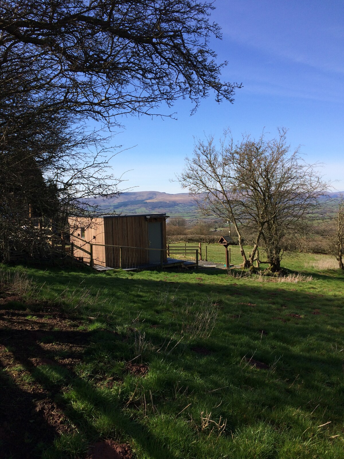 Das Blockhaus ist eine herrliche, unabhängige Wohnung inmitten der atemberaubenden Schönheit des Brecon-Beacons-Nationalparks, einem internationalen Dark-Sky-Reservat. Die Unterkunft befindet sich in den weitläufigen Gärten des Pen-y-Bryn Guest House und bietet einen Blick auf einen natürlichen Mühlteich mit den nahegelegenen Black Mountains als Kulisse. Das Blockhaus ist ein gemütlicher Rückzugsort auf dem Land und bietet den perfekten Ort zum Entspannen und Erholen oder als Ausgangspunkt, um die vielen Aktivitäten zu erkunden, die die Gegend zu bieten hat.
