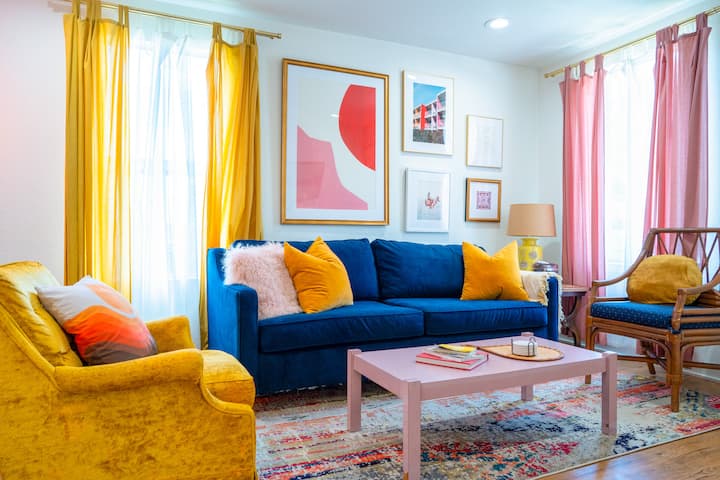 An eclectic mix historic & vintage homes as you walk to the Heart of South Congress (.5 mile walk from house). Head north, which is down the hill of East Side Drive, cross Oltorf, continue along Stacy Park, turn left on Monroe & pop out on South Congress at Home Slice Pizza & Guero's Taco Bar.