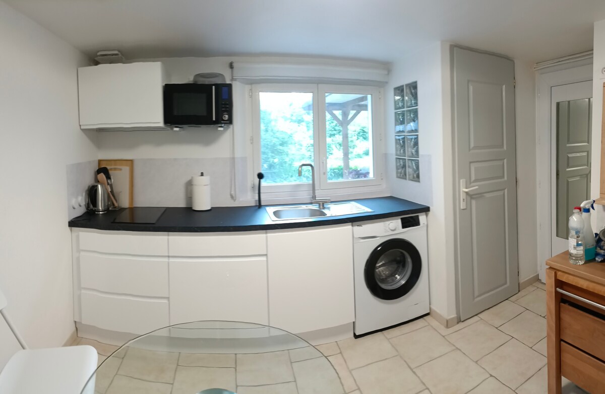 Entdecken Sie diese Unterkunft mit gepflegter Dekoration und genießen Sie einen Moment der Entspannung im privaten Whirlpool. Gästehaus 10 Minuten von Laval entfernt, in der Nähe der Hauptverkehrsstraßen (Autobahn 5 Minuten), am Ufer der Mayenne und ihres Treidelpfads. Bestehend aus einem Wohn-/Ess-/Küchenbereich (ausgestattet und eingerichtet), einem Schlafbereich, der zum privaten Jacuzzi hin offen ist, einem Badezimmer und einer Toilette. Genießen Sie einen schönen Garten und direkten Zugang zum Treidelpfad.