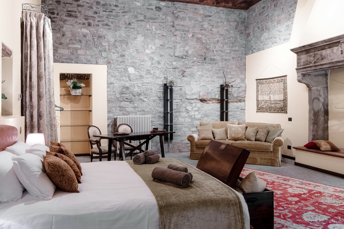 Das Deluxe Castleview Zimmer befindet sich im Corte Realdi, einem kleinen Boutique-Hotel direkt vor dem berühmten Castelvecchio Museum und 200 Meter von der Arena di Verona und der Piazza Bra entfernt. Das private Schlafzimmer verfügt über ein großes eigenes Badezimmer mit Dusche und luxuriösen Annehmlichkeiten. Das Frühstück ist im Preis inbegriffen, das Zimmer verfügt über TV, Radio, WLAN, eine gefüllte Minibar, Klimaanlage und Heizung, Nespresso-Kaffee- und Teezubehör und 24-Stunden-Kundenbetreuung.