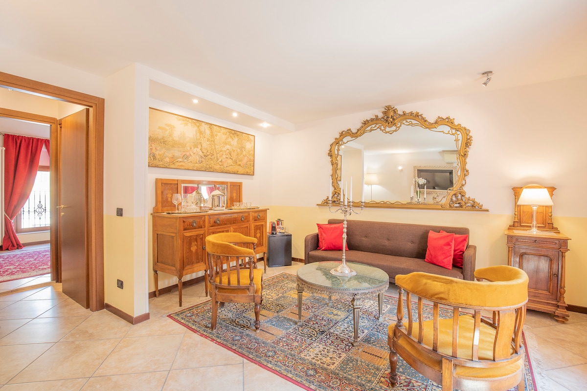 Die historische Baroque Suite ist ein exklusives großes Zimmer von 60 m ² in einem alten Gebäude, direkt im historischen Zentrum von Como. Das Zimmer zeichnet sich durch ein raffiniertes Dekor und voller authentischer Antiquitäten aus, eingebettet in eine zeitlose Atmosphäre, zwischen mittelalterlichen Mauern und edlen Stoffen. Unsere Suite ist der perfekte Ort, um die Magie und Romantik des Sees und die Schönheit von Como an einem einzigartigen Ort im Herzen der Stadt zu genießen, um unsere Fahrräder zu besuchen!