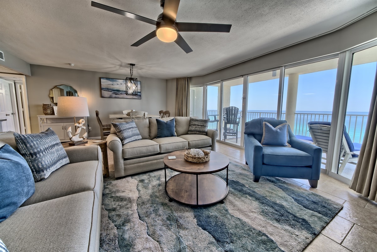 AM 🏝 BESTEN IN PCB 🏝 Es gibt nichts Besseres, als mit einem atemberaubenden Meerblick von deinem Hauptschlafzimmer aufzuwachen und direkt auf einen privaten Balkon zu treten, der den atemberaubenden Sonnenaufgang über dem Golf überblickt. Beginne deinen Tag mit einer warmen Tasse Kaffee, während du die ruhige Schönheit des smaragdgrünen Wassers genießt. Entspanne dich am Abend bei einem Glas Wein, während du Delfine beim Vorbeischwimmen beobachtest. Gehen Sie direkt auf den zuckerweißen Sandstrand, entfalten Sie Ihre Stühle und genießen Sie die Sonne Floridas. Perfekter Kurzurlaub